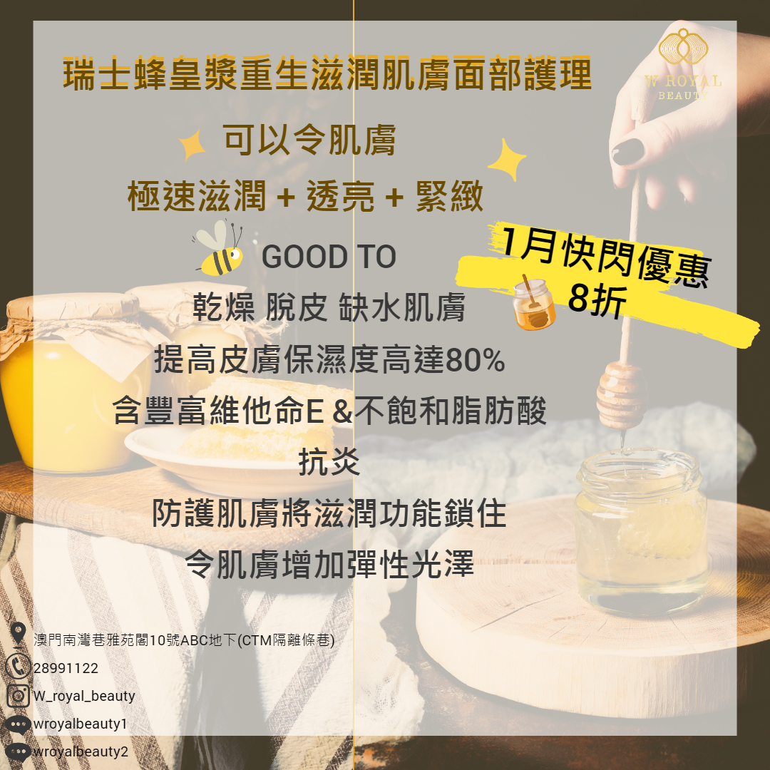 瑞士蜂皇漿重生滋潤肌膚面部3次療程